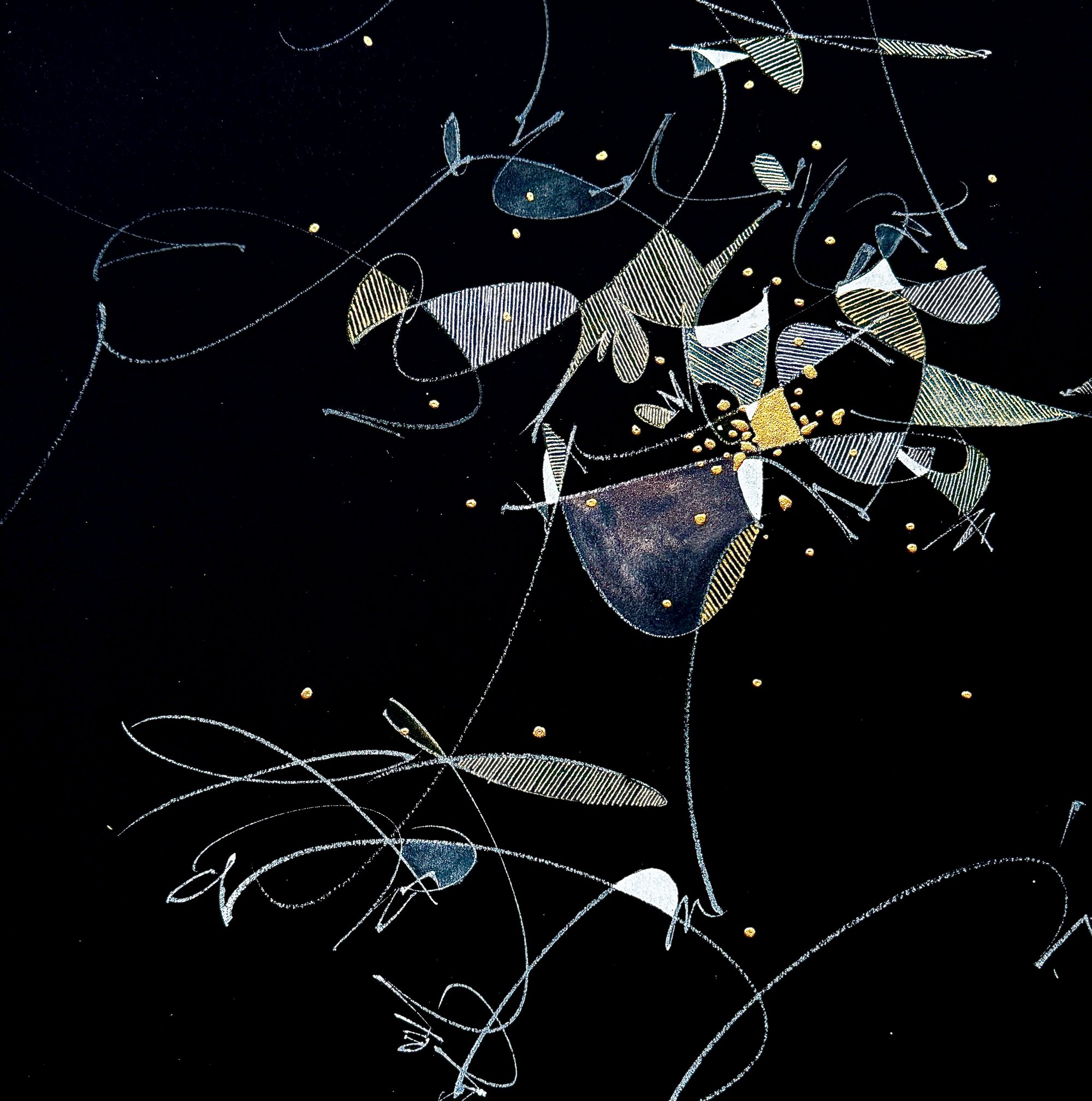 30X30x4 CM gouache, ink, acrylic on Fabriano black paper glued on wooden panel, 2025